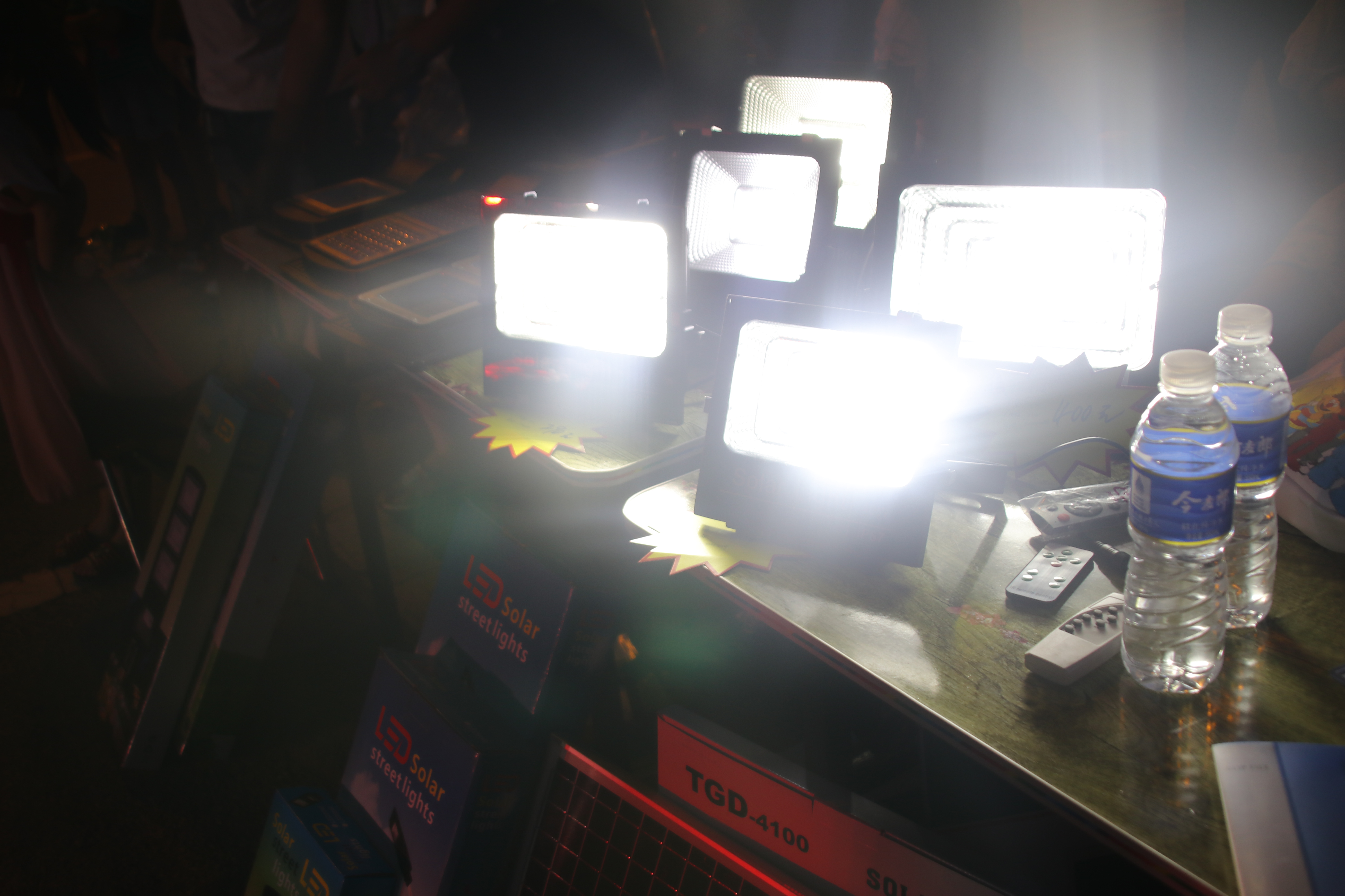 挑戰自我,照亮未來.7月5號下午七點半,鄧州賓館院內正在舉行一場非同尋常的比賽,比賽現場正中間擺放著拳擊擂臺,堅固結實,平整穩定。左邊是蘇亞新能源設備有限公司的太陽能路燈、投光燈的展示區,投光燈全部打開,將夜晚的賽場視野又擴大了許多。右邊是此次比賽的評委和頒獎嘉賓。蘇亞新能源設備有限公司的程總榮幸受邀作為此次比賽的頒獎嘉賓之一來到了比賽現場。
